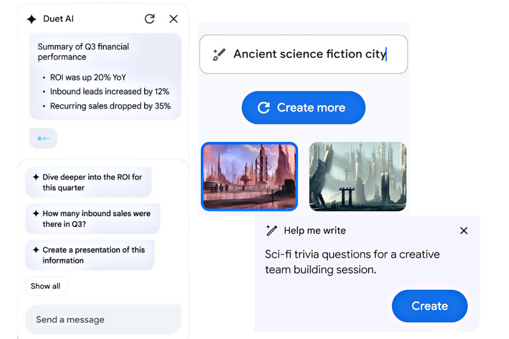 Duet AI brings generative AI capabilities to Google Workspace to enable teams to be more efficient, productive, and collaborate better than ever before. From drafting blog posts and emails in seconds to instantly creating product design images, it helps users get more work done faster. This frees up time for them to focus on more impactful work.